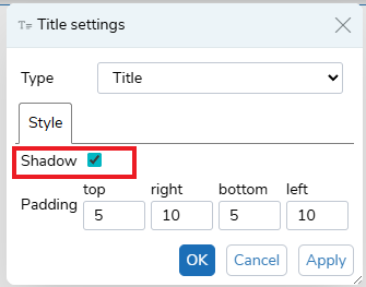 The shadow style places a shadow around the widget in the dashboard. This is available for all widgets.