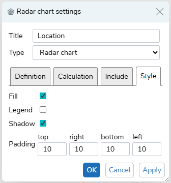 The Fill option fills in the radar chart with colour.