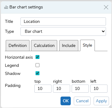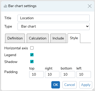 Selecting the Horizontal axis option switches the horizontal and vertical axes. This is available for Line charts, Bar chart and Stacked bar.
