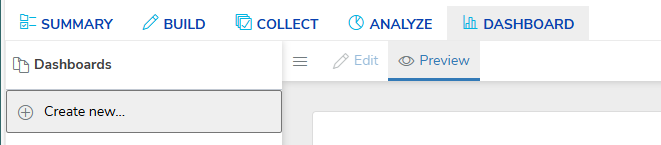 Each survey can have multiple dashboards. First you need to create a dashboard, before adding the content.