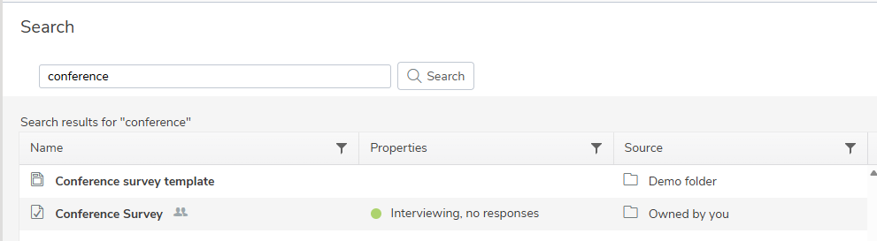 1. In the Find menu, click on Recent items. This lists the items, such as surveys and templates, that you have accessed recently. The items are in order of date and time accessed, with the most recent at the top.