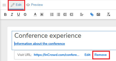 - Click Insert Link on the Dashboard toolbar. This opens the Link dialog.