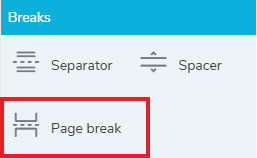 - In the Breaks menu, select Page break and drag to the dashboard editor.