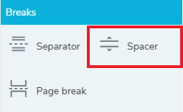 - In the Breaks menu, select Spacer and drag to the dashboard editor.