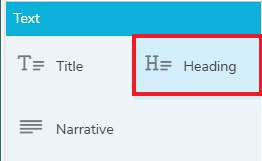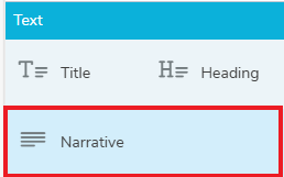 There are three types of text available: Titles, Headings and Narrative