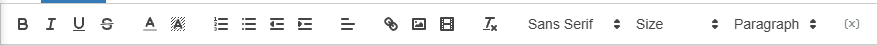- Paragraph style options: numbered list, bullet list, decrease indent, increase indent and align