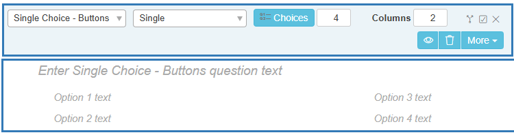- Enter the Single Choice – Buttons question text and each Option Text answer choice.
