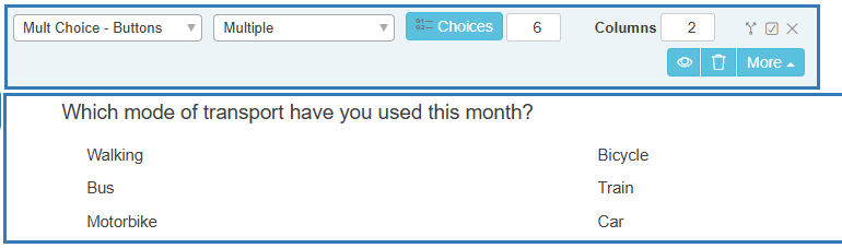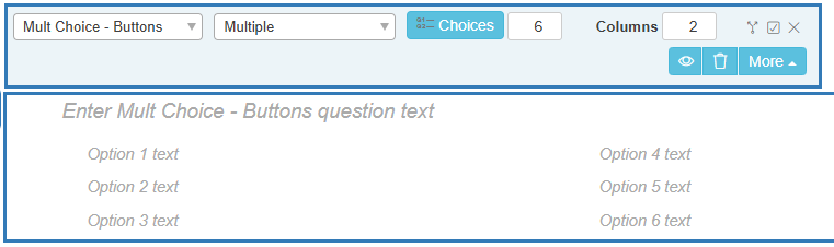 - Enter the Multi Choice – Buttons question text and each Option Text answer choice.