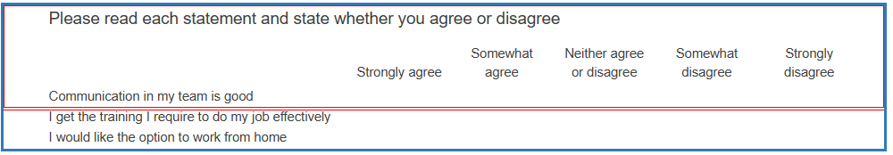 - Set the number of Rows to the number of aspects to rate.