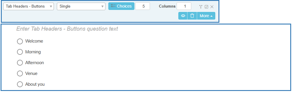 - Insert a Tab Headers – Buttons question into the questionnaire by double-clicking or by dragging the question to the questionnaire.
