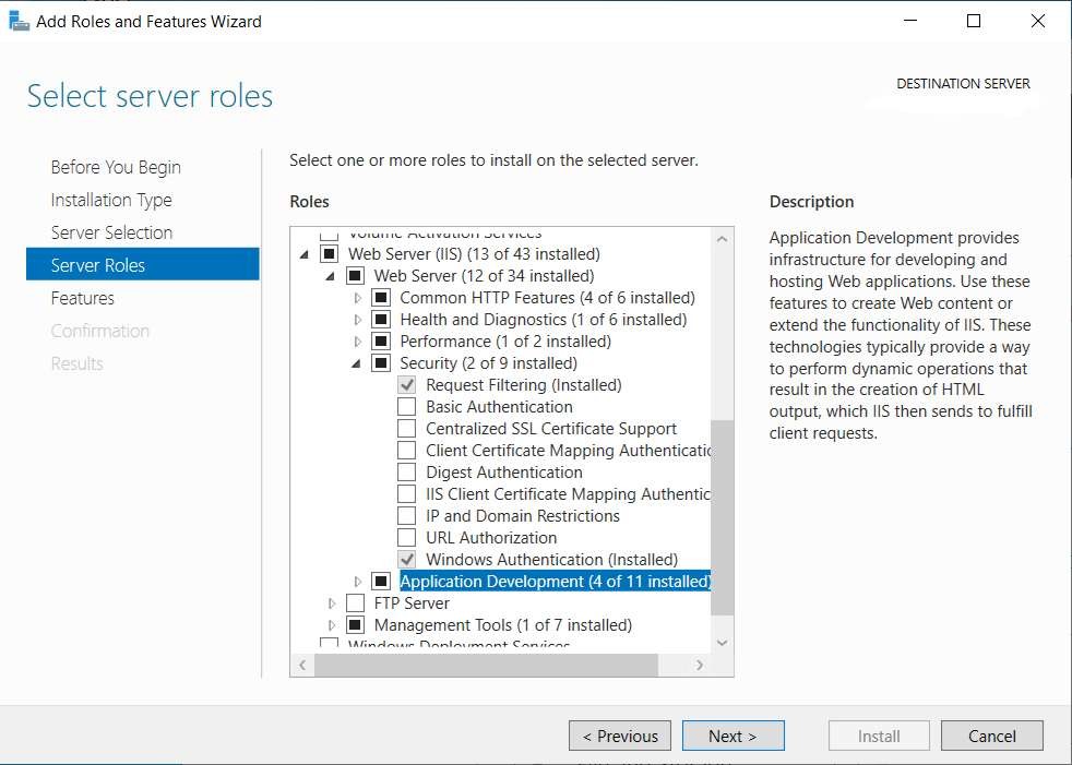 Configure the server using ‘Add roles and features’ to have the following components to ensure the software installs and runs correctly.
