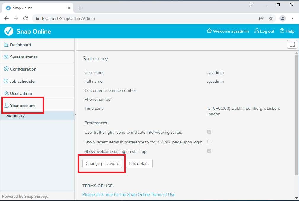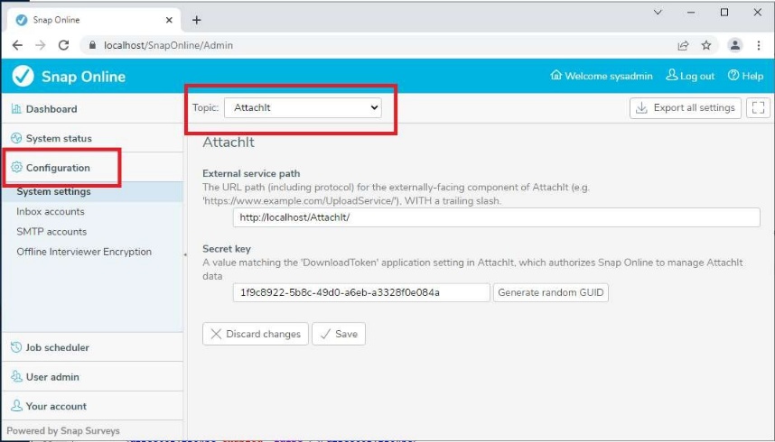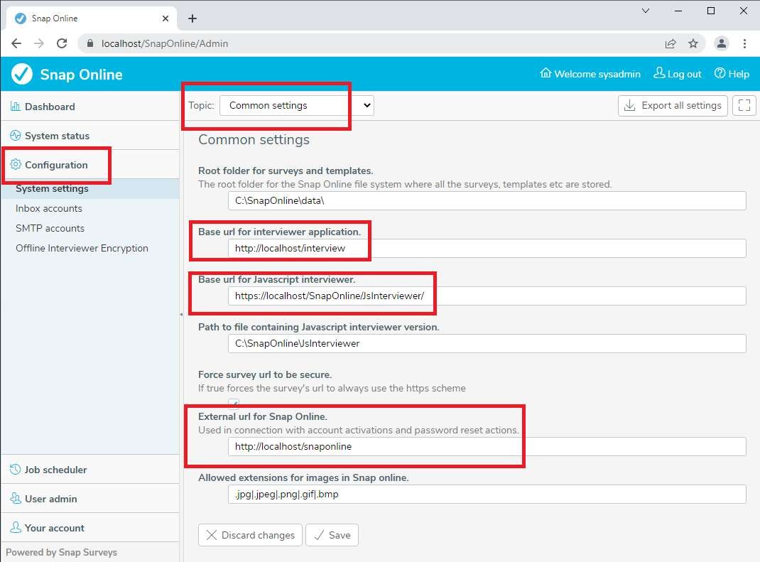 Most of the configuration is set up for optimum working of Snap Online and so will not need to be adjusted. However, the following configuration is necessary: