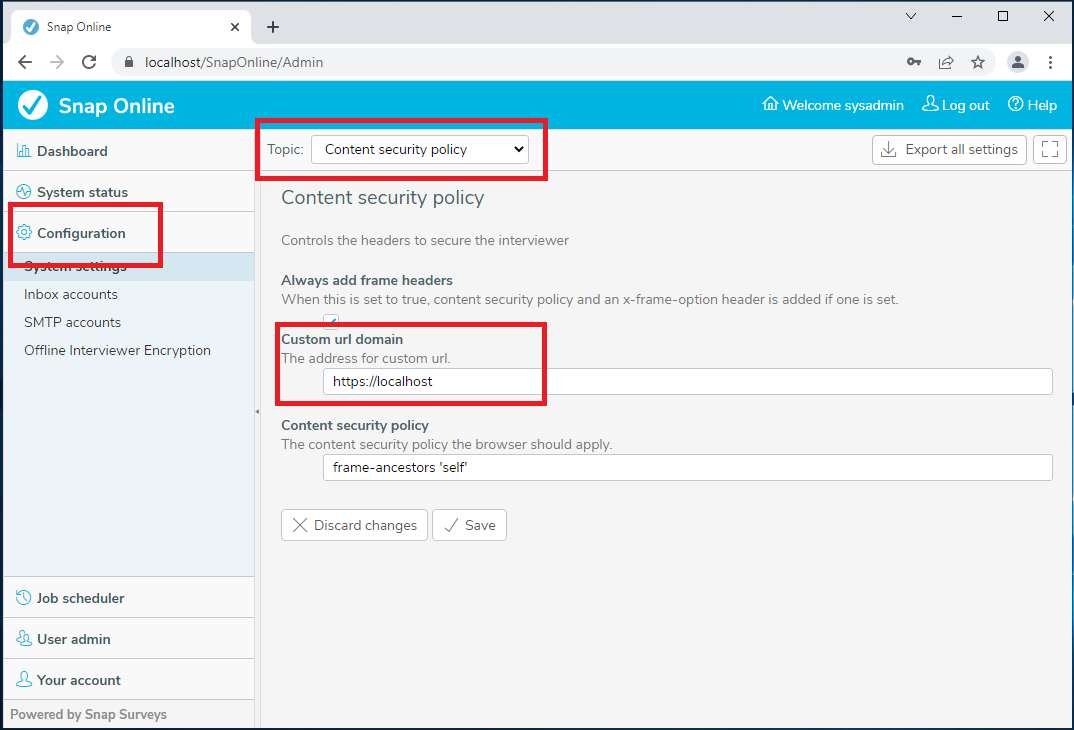 Select Configuration in the accordion and select the ‘Content security policy’ topic: