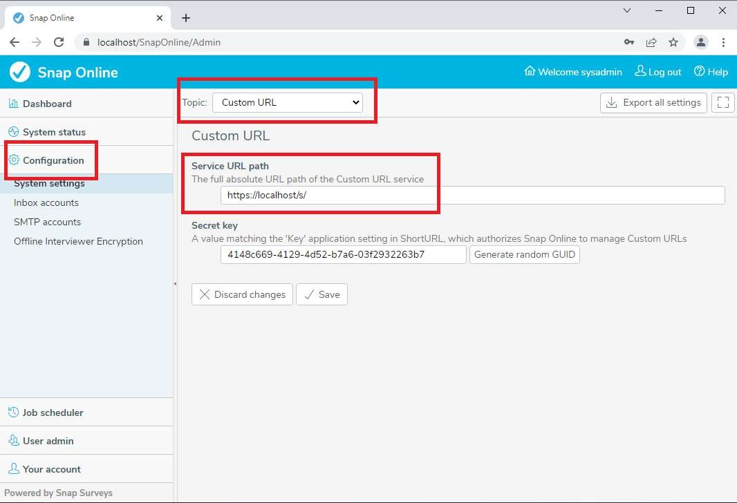 C:\SnapOnline\WebContent\ShortUrl\config\MachineSpecific.config and change the setting: