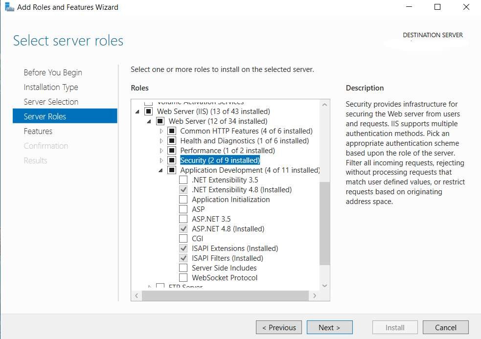 These installation instructions have been written for Window server 2022. You will need to refer to the system documentation if installing on a different version of Windows server
