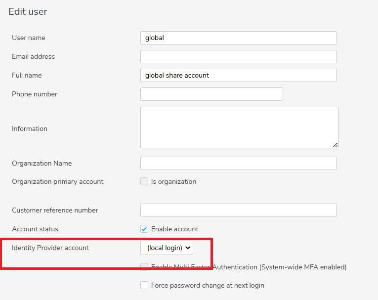 Once an identity provider has been configured each account can be set to either use local (Snap Online) authentication or the identity provider.