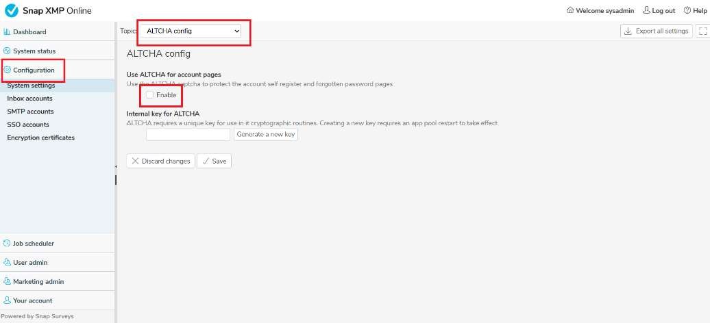 Select Configuration in the accordion and select the ‘ALTCHA’ topic: