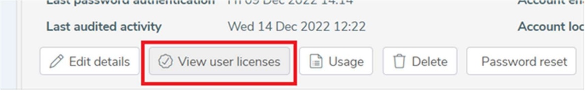 To change the permit, select the user via an admin account and then select the ‘View user licences’ option: