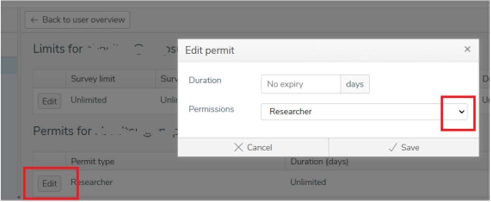 Note: The permit on a resource (i.e. survey) is dependent on the permit that the resource owner has and in the case of sharing it is also dependent on the permit the shared to account has as well as the permit applied on the share itself. So if you use 1 account via the API and want access to surveys that belong to a different account but have been shared to the API account then both accounts need to have API permission as well as the share.