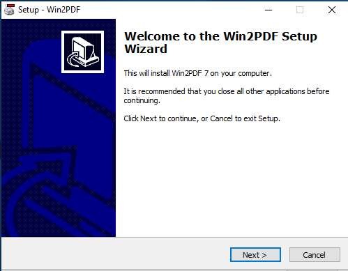 The win2pdf installer will automatically start. Follow the prompts to install.