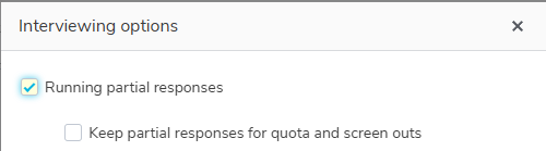 - The Running partial responses option determines whether the selected survey will keep partial responses. Select this option to run partial responses and deselect to turn off partial responses.
