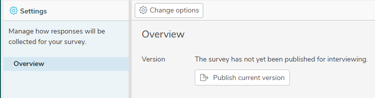 - Once interviewing pauses you can see the Publish current version button. Click on the Publish current version button to publish the latest version of the questionnaire.