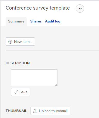 In the Summary section of a survey template, you have the option to upload a thumbnail image. This can help users identify the survey template when they are creating a new survey.